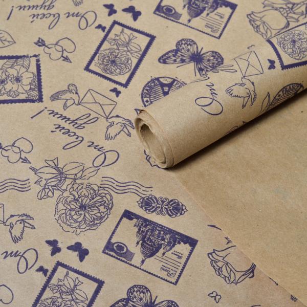 Крафт бумага "Марки" фиолетовый цв. на коричневом фоне 720мм/60гр/60мкр/8,5м± 5%