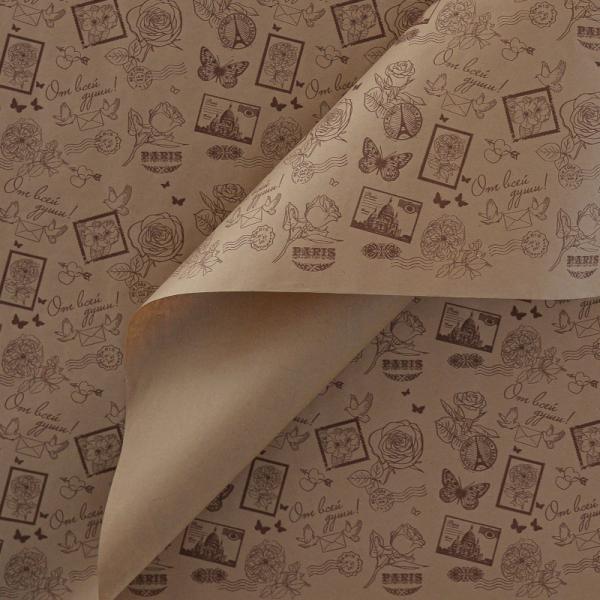 Крафт бумага "Марки" коричневый цв. на коричневом фоне 720мм/60гр/10м ± 5%