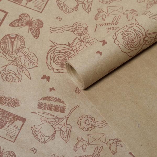 Крафт бумага "Марки" коричневый цв. на коричневом фоне 720мм/60гр/8,5м± 5%