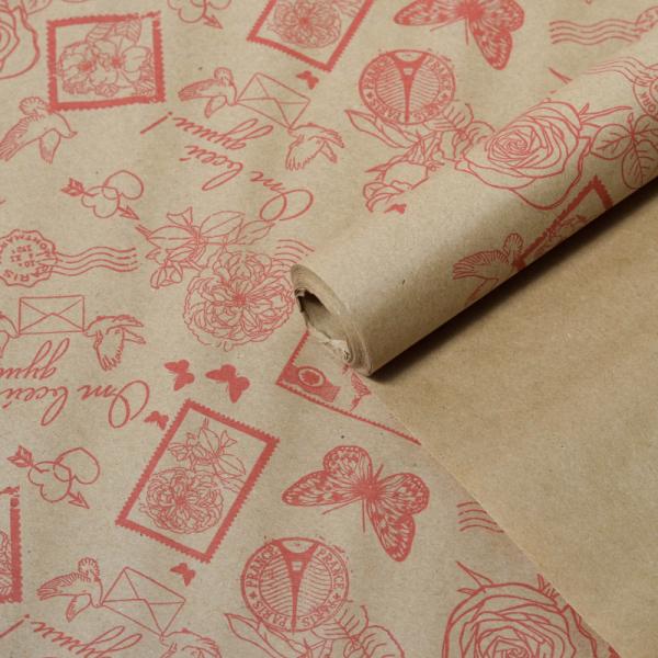 Крафт бумага "Марки" красный цв. на коричневом фоне 720мм/60гр/60мкр/8,5м± 5%