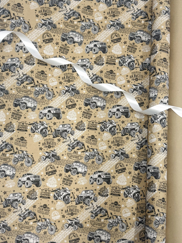 Крафт бумага Мужчина №1 черный/белый на коричневом 700мм/60гр/10м ± 5%