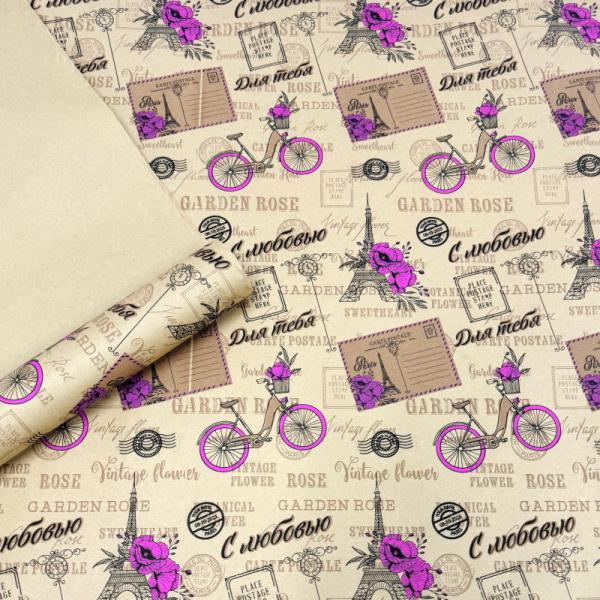 Крафт бумага Париж С Любовью! розовый на коричневом фоне 680мм/60гр/10м ± 5%*