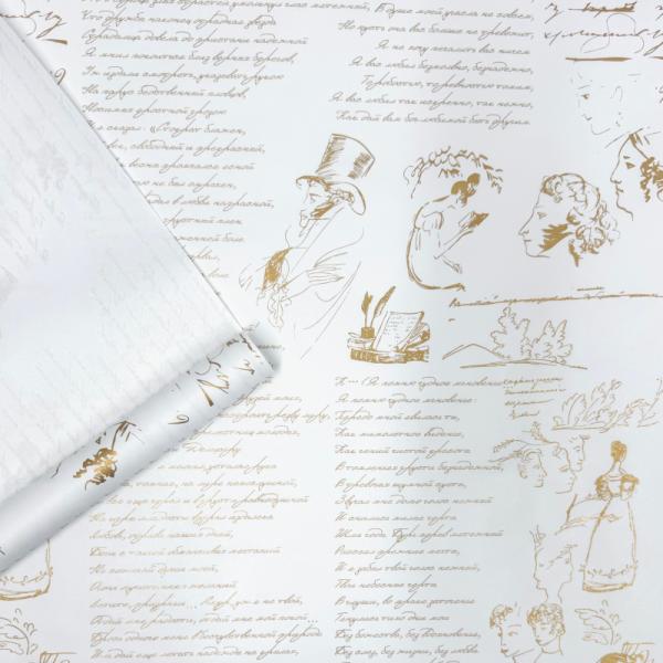 Крафт бумага Пушкин золотой на белом фоне 700мм/60гр/10м ± 5%*