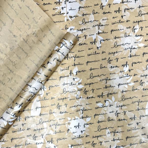 Крафт бумага Розы письмо белый/графит на коричневом фоне 720мм/40гр/10м ± 5%