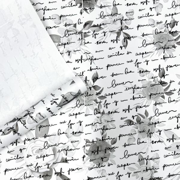 Крафт бумага Розы письмо серый/черный на белом фоне 700мм/60гр/10м ± 5%