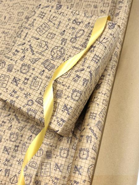 Крафт бумага Школьная пора коричневый/синий на коричневом фоне 720мм/60гр/10м ± 5%