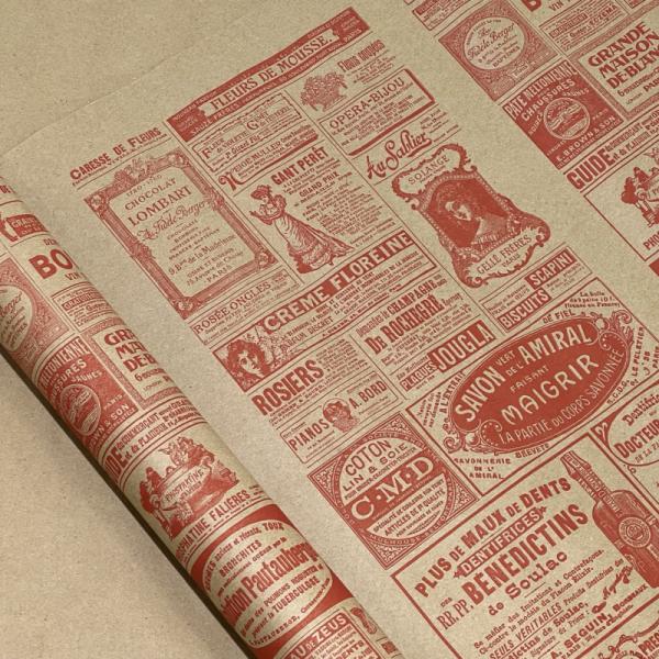 Крафт бумага "Винтажная газета" красная на коричневом фоне 70см/60гр/60мкр/10м± 5%