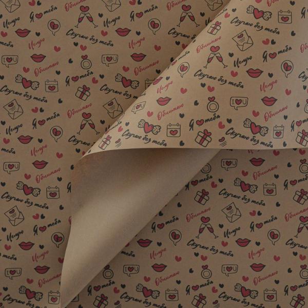 Крафт бумага "Я люблю тебя" черный/красный цв. на коричневом фоне 680мм/60гр/10м± 5%