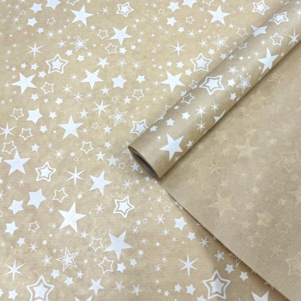 Крафт бумага Звезды белый на коричневом фоне 720мм/40гр/10м± 5%
