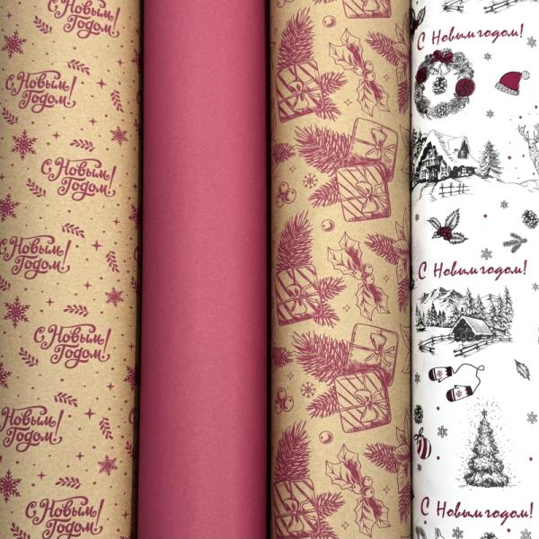 Крафт бумага набор листов Новый год малиновый 0,68*1м 8шт