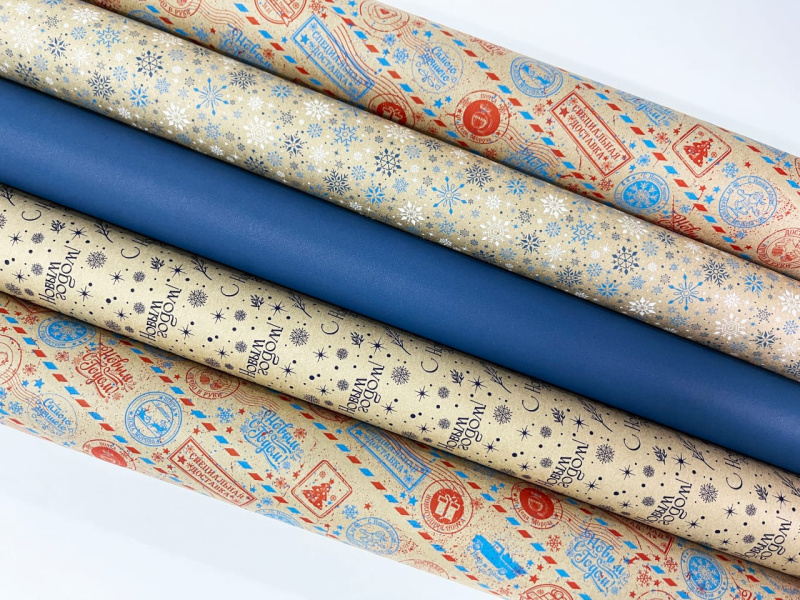 Крафт бумага набор листов Новый год синий 0,68*1м 8шт