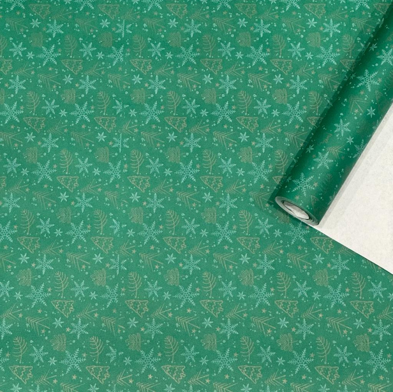Упаковочная новогодняя бумага "Елочки" зеленая 68см/60пл/10м