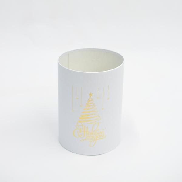Коробка цилиндр 13*18 белый без крышки с тиснением НГ золото Елка
