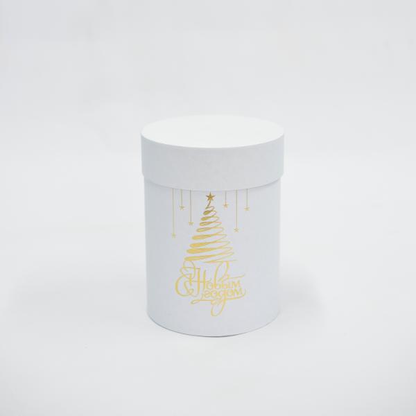 Коробка цилиндр 13*18 белый с тиснением НГ золото Елка