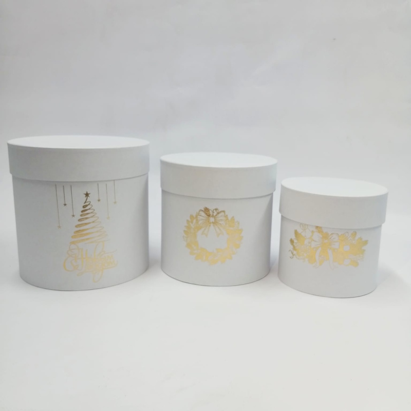 Набор шляпных коробок 3в1 белый с тиснением НГ золото,18*18/16*16/13*13