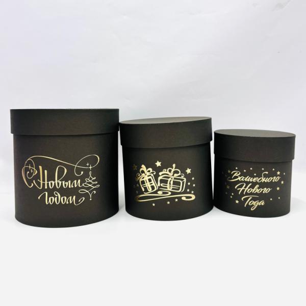 Набор шляпных коробок 3в1 черный с тиснением с Новым Годом золото 13*13*/16*16/18*18