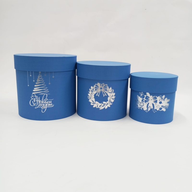 Набор шляпных коробок 3в1 синий с тиснением НГ серебро,18*18/16*16/13*13