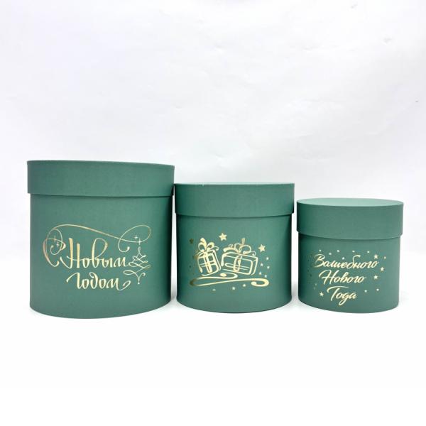Набор шляпных коробок 3в1 зеленый изумруд с тиснением с Новым Годом золото,18*18/16*16/13*13