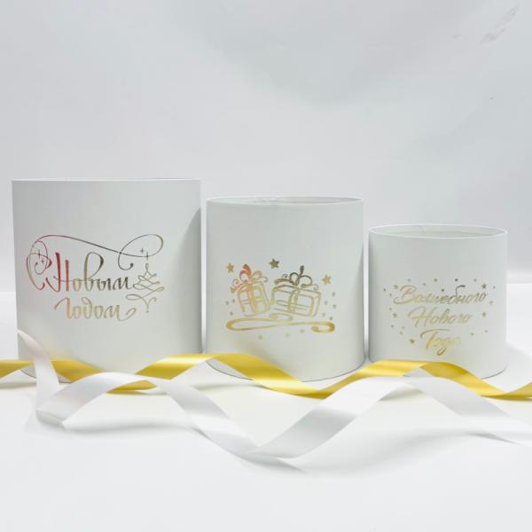Набор шляпных коробок без крышек 3в1 белый с тиснением С Новым Годом золото13*13*/16*16/18*18