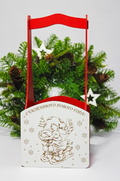 Декоративный ящик квадратный с тиснением 140*125*h300 Снеговик (золото) красный