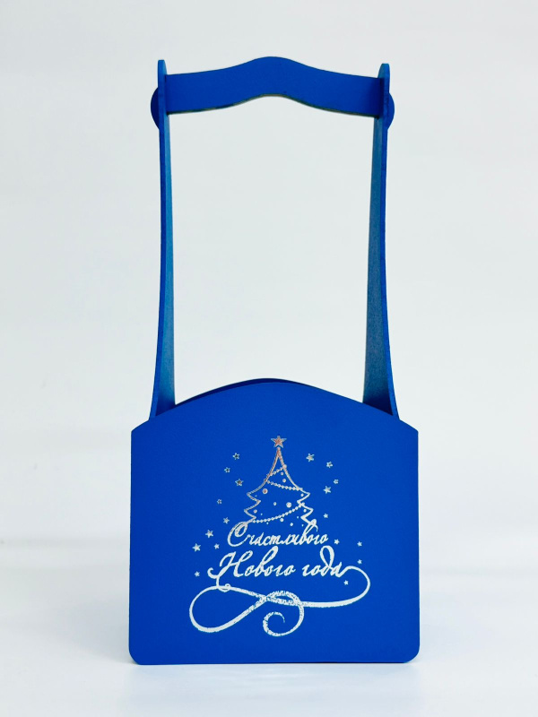 Декоративный ящик квадратный с тиснением 140*125*h300 Елка (серебро) синий