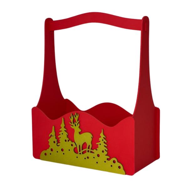 Декоративный ящик с высокой ручкой 255*125 h300 "Лес" красный декор золото