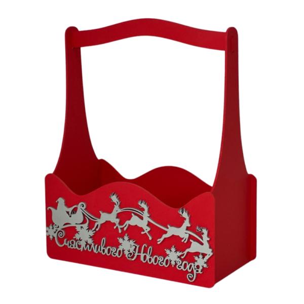 Декоративный ящик с высокой ручкой 255*125 h300 "Счастливого нового года" красный декор серебро