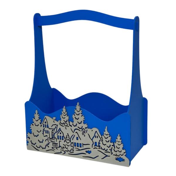 Декоративный ящик с высокой ручкой 255*125 h300 "Снежная деревня" синий декор серебро