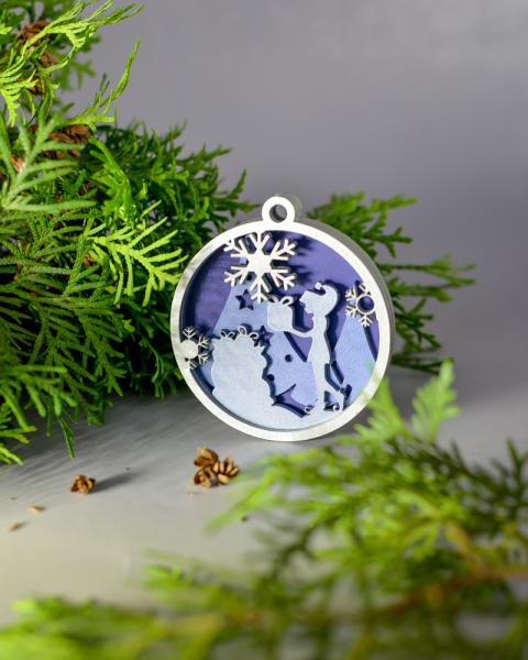 Игрушка новогодняя четырехслойная "Рождество" синяя/серебро 90 мм