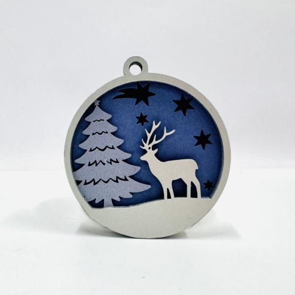 Игрушка новогодняя четырехслойная "Олень" синяя/серебро 90 мм