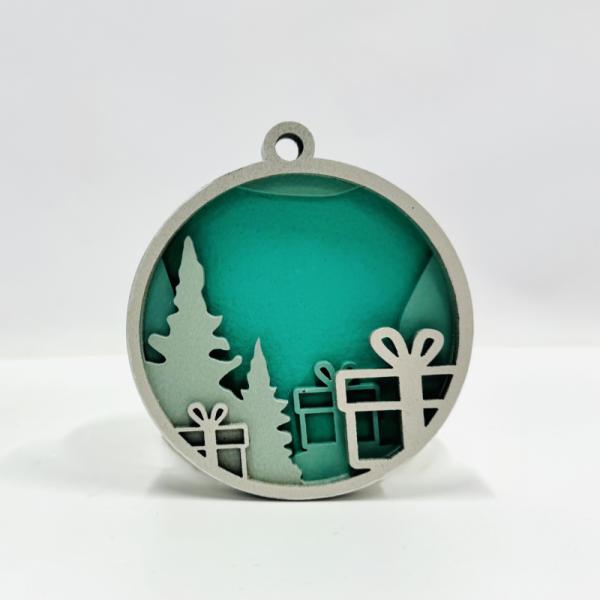 Игрушка новогодняя четырехслойная "Подарки" зеленая/серебро 90 мм
