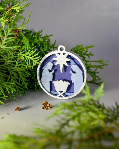 Игрушка новогодняя четырехслойная "Рождество" синяя/серебро 90 мм