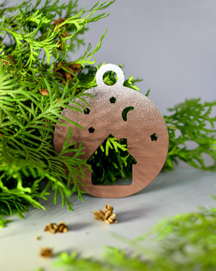 Игрушка новогодняя однослойная "Домик в шаре" шоколад/серебро 97мм 3шт