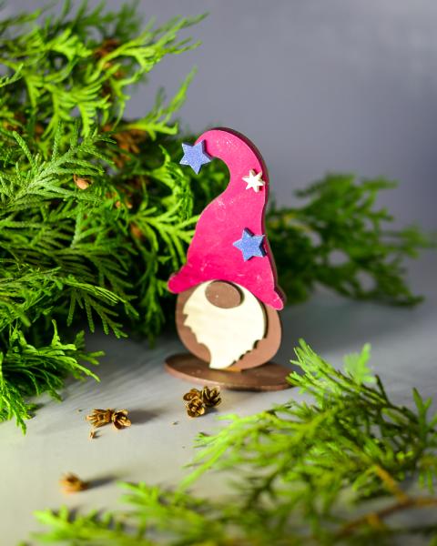 Игрушка новогодняя трехслойная "Гном на подставке" красный 58*123 мм