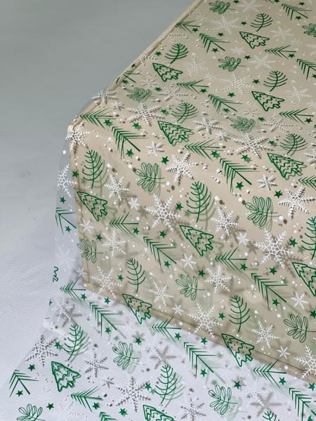 Пленка прозрачная с рисунком "Елочки"НГ зеленая 40мкм/68см/200гр ± 5%