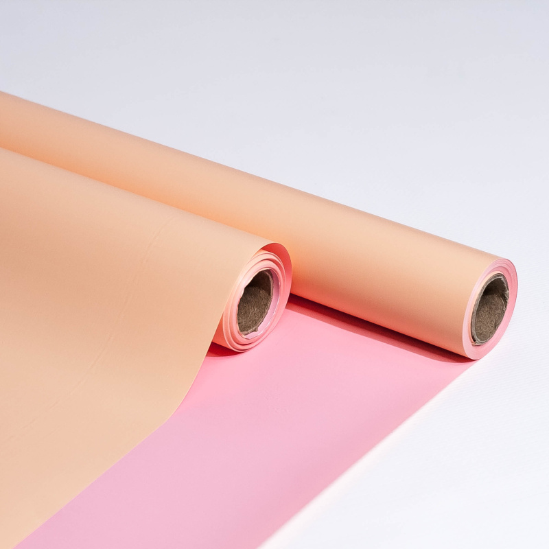 Пленка матовая Корея двухсторонняя персиковый/бледно розовый 48см*13м 60мкр