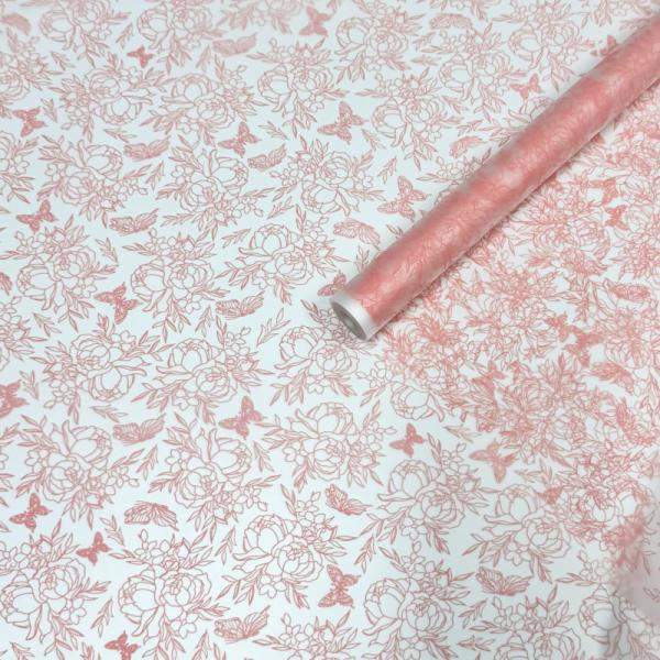 Пленка матовая "Контурные пионы" румяна 60см,50мкм,10м