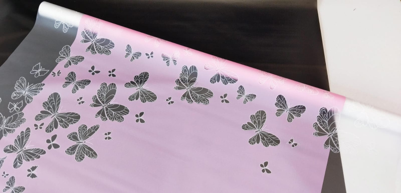 Пленка матовая (MDS) "Бабочки" белый/ бледно-розовый 70см,40мкм,10м