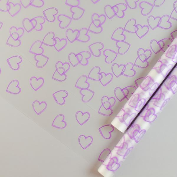 Пленка матовая (MDS) "Сердца сиреневые" 60см,40мкм 200гр