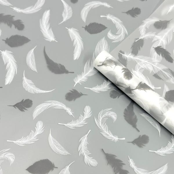 Пленка матовая Перья белый/светло-серый 60см 50мкм 10м