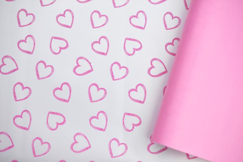 Пленка матовая двухст.с рисунком"Сердце"цв.пудровый 58см*12м±5% 50мкр