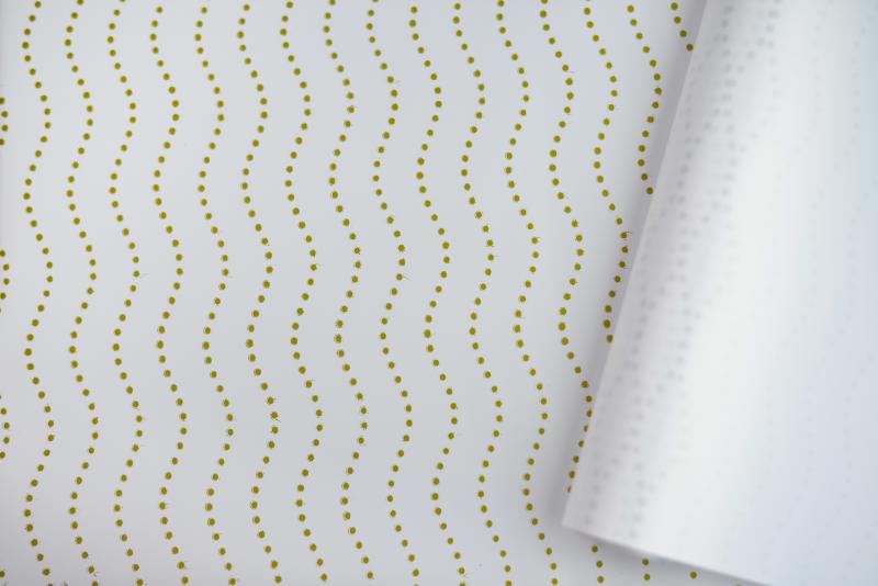 Пленка матовая двухст.с рисунком"Точка волна"цв.белый/золото 58см*12м±5% 50мкр