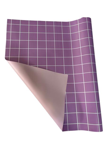 Пленка матовая двухсторонняя Клетка нежная сирень/бледно-розовый 58см*10м±5% 65мкм