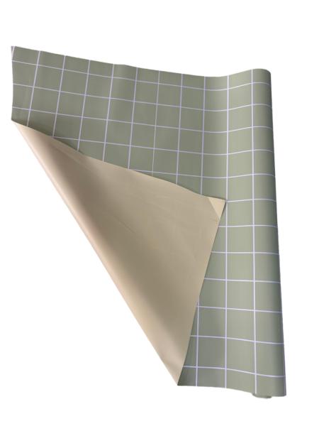 Пленка матовая двухсторонняя Клетка олива/сливочно-желтый 58см*10м±5% 65мкм