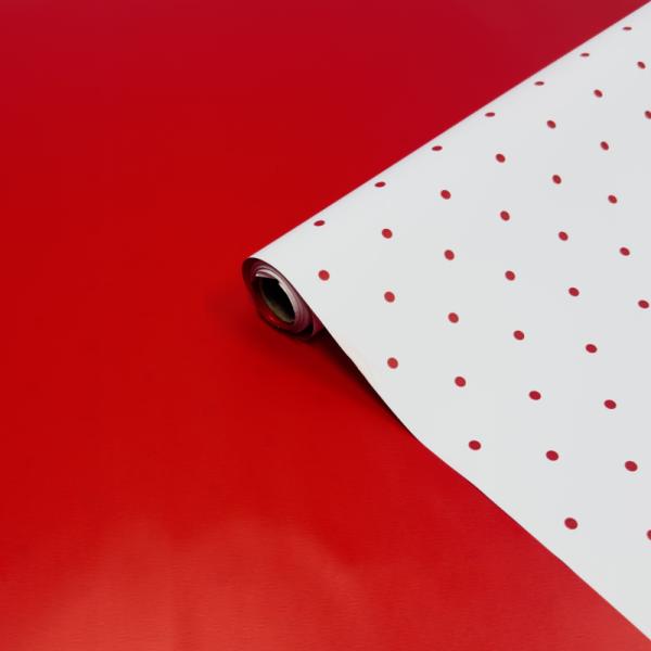 Пленка матовая двухсторонняя Мелкий горошек белая/рубин 58см*10м±5% 65мкм
