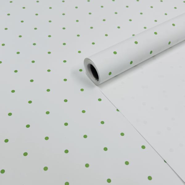 Пленка матовая однотонная Мелкий горошек белый/лайм 58см*10м±5% 65мкм