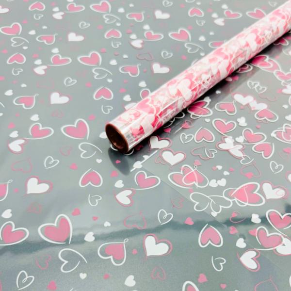 Пленка прозрачная двухцветная Сердечки 2 бело-красные 70см*200гр ± 5%