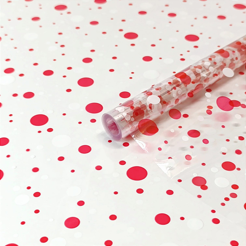 Пленка прозрачная двухцветная Конфетти белый/красный 70см*200гр ± 5%