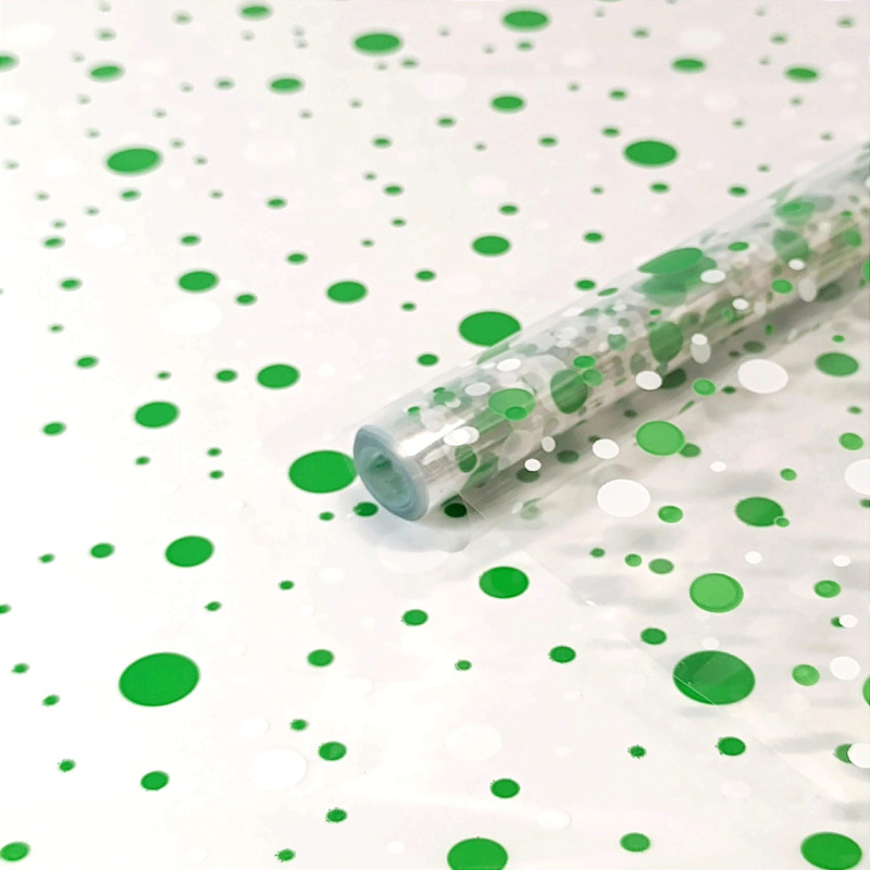 Пленка прозрачная двухцветная Конфетти белый/зеленый 70см*200гр ± 5%