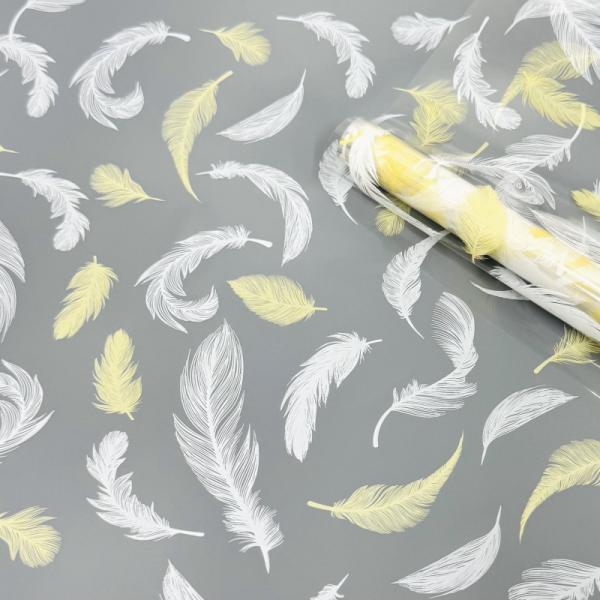 Пленка прозрачная двухцветная Перья белый/сливочно желтый 68см*200гр ± 5%
